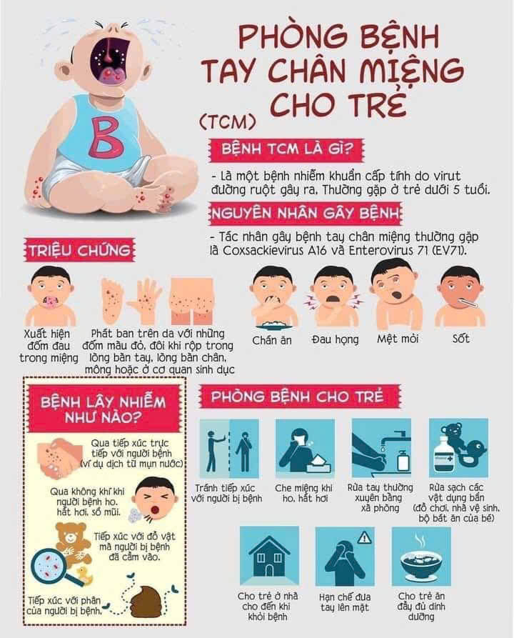 👉 Hiện nay bệnh Tay chân miệng đang diễn biến hết sức phức tạp và có chiều hướng gia tăng mạnh trong cộng đồng. Đây là một trong những bệnh truyền nhiễm cấp tính thường gặp nhất ở trẻ nhỏ dưới 5 tuổi. 🌿 Bệnh Tay chân miệng rất dễ lây truyền từ người sang người qua đường hô hấp hoặc tiêu hóa, tiếp xúc với nước bọt, dịch tiết mũi họng, các bọng nước vỡ của người bệnh. 🌿 Cha mẹ có thể phát hiện được con mình bị bệnh tay chân miệng thông qua các triệu chứng: sốt, đau họng, viêm loét miệng lưỡi, phát ban dạng phỏng nước ở bàn chân, tay, mông, gối. Hiện nay chưa có vacxin phòng bệnh tay chân miệng cũng như thuốc đặc trị bệnh cho trẻ. Cha mẹ hãy phòng chống bệnh tay chân miệng cho trẻ một cách hiệu nhất để phòng bệnh cho bé nha /-heart